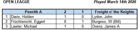 On board 2, Eggert came across one of the few responses to 1. e4 that he didn’t know inside out. Bill Burgess’ Alekhine Defence completely threw Eggert and Bill went a rook up quite early in the opening. Eggert battled on, even conjuring up an attack of his own but to no avail. Bill calmly defended and even won another piece which forced Eggert to resign.