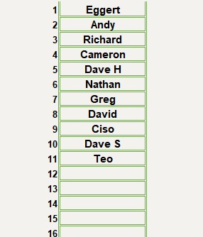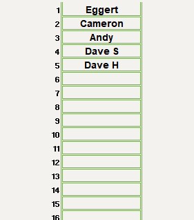 5) The player on top at the end of the season (July 31st) , provided that they have played at least 10 games, will receive the trophy ….but, after every third session there is a time-out, anyone who hasn’t played a game since the previous time-out will drop one rung and be replaced by someone who has played.